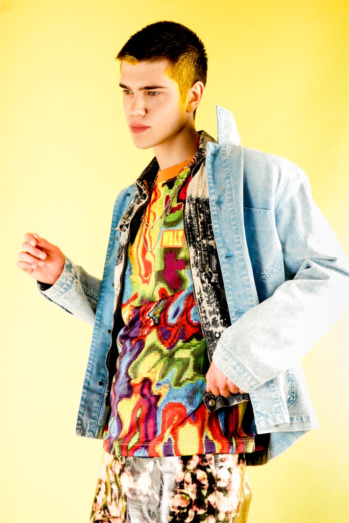Franz wears Cotton jacket MOSCHINO Mesh top STILL ILL Necklace ASOS