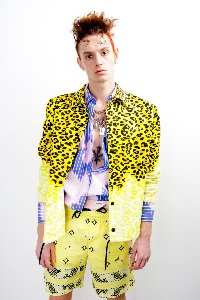 Printed jacket, tie-dye shirt, underwear and shorts, MSGM