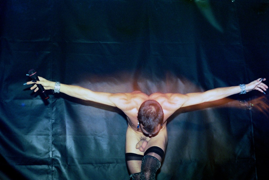 On June 22nd 1996 Killer Plastic O, the iconic and groundbreaking club I worked at for more than a decade in Milano, hosted a party celebrating the end of the ‘Festival di Cinema Gay e Lesbico di Milano’ and the release of two seminal queer movies: Wigstock, The Movie, and Bruce LaBruce’s Hustler White, with special guests, beside the queercore director, actor and drag queen extraordinaire Alexis Arquette, as Eva Destruction and Glenn Belverio ( as Glennda Orgasm). Alexis used Eva Destruction as her drag name at the time but she was credited as Alexis on the flyer, as an actor Alexis was already quite well known for his incredible performance in Last Exit To Brooklyn and roles in Pulp Fiction, Frisk etc, so we were all big fans and quite excited ( I was also super excited that BLB would be there but being a shy bitch I don’t think we interacted too much). I vaguely recall an early dinner before the event (I always say that if you remember the 90s you weren’t there). I remember Alexis told us about his misadventures with the customs guys at the airport, apparently they were looking rather perplexedly at his stretch mini-dresses and hooker shoes, and when he tried to explain by saying ‘That’s my Drag!’ they thought he said ‘drugs’ and he almost got arrested. Alexis isn’t with us anymore, unfortunately, and parties of any kind aren’t even on the horizon for the time being, so when I found the negatives from that crazy, eventful night ( I won’t go into detail but, amongst other things, my habit of being on stage with a drink got the floor slippery and Alexis was NOT happy about that, no hunty, she was not) , I had to get them developed and scanned, and share them with somebody. This is a snapshot of a time between Supermodel and Drag Race, when being a drag queen could get you straight trade but not a gay boyfriend, when contouring wasn’t even a word, queens had to use theater make-up because that was the only full coverage option, and both stars and local eccentrics had to change in a dirty basement on a Saturday night. Enjoy.