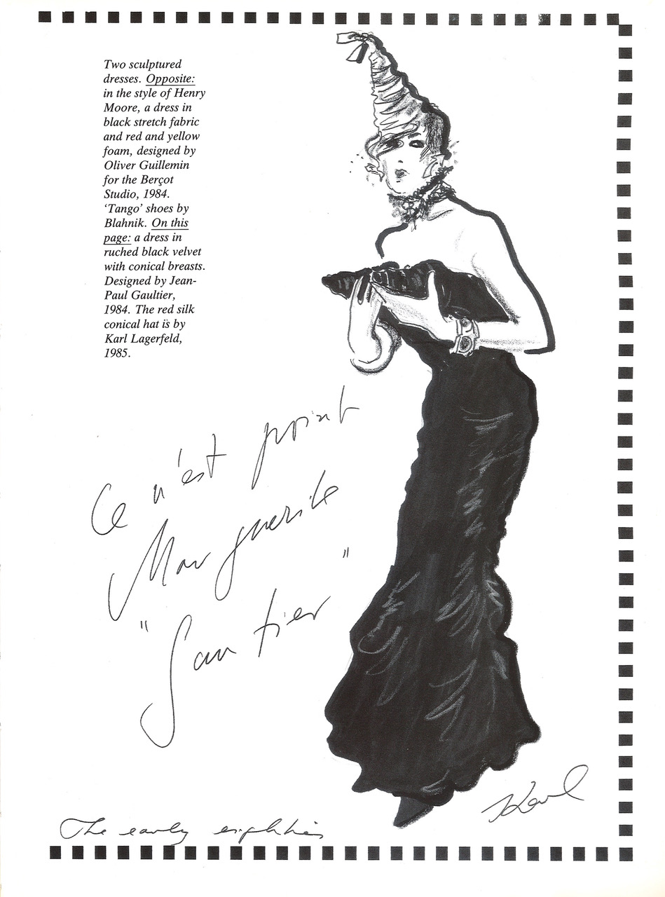 She is prepared for any improvisation, and the unexpected never fazes her. She scintillates on the everyday stage. She dramatizes the passing moment. Instinct is her memory. She recognizes what she has never known. ‘ Karl Lagerfeld , Lagerfeld’s Sketchbook preface ( 1986)