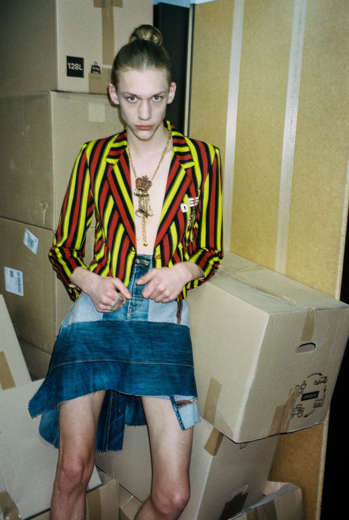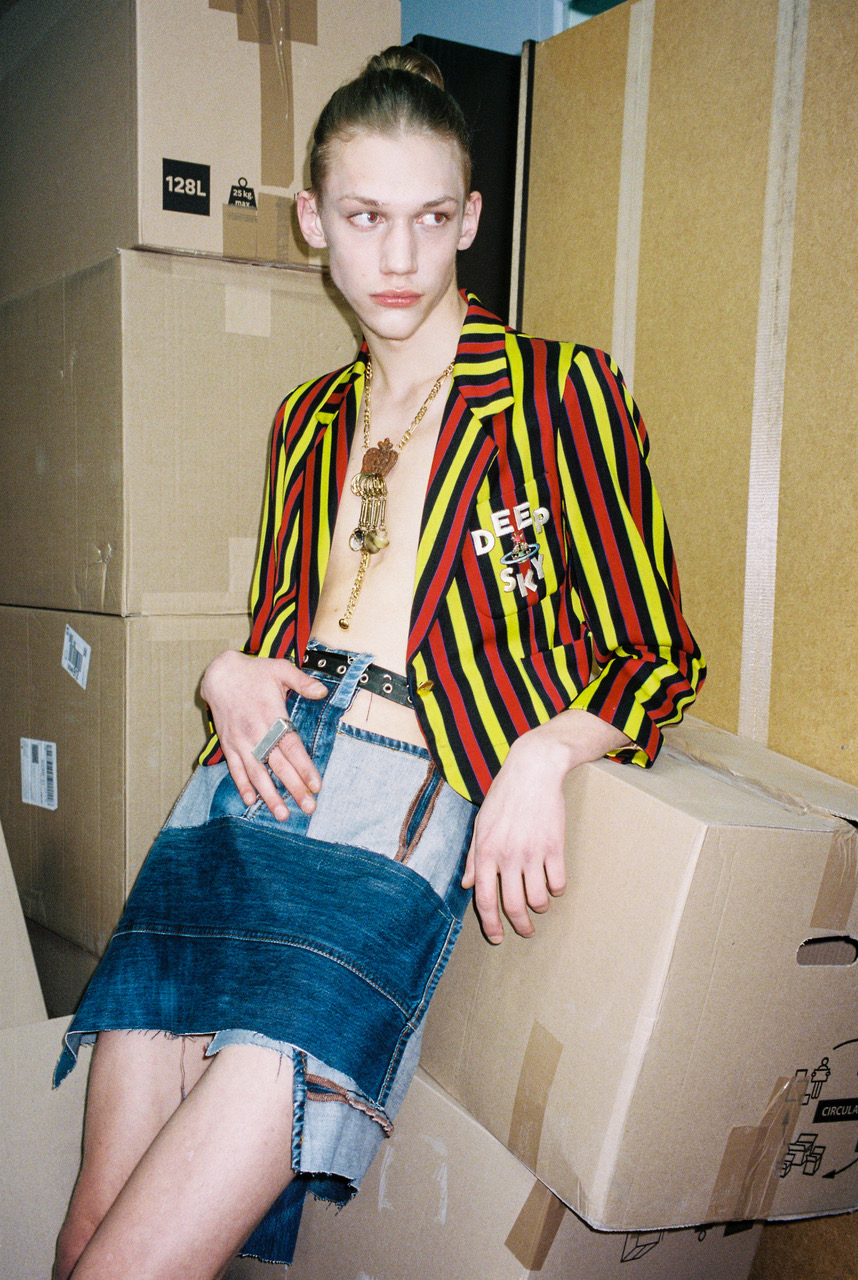 RS: This shoot has been in the works for months, I’ve known Filippo Leone Maria Biraghi for decades, we’ve worked together at IED Moda Milano and we had an online magazine called Flamboyant back when practically nobody else was doing it, I’m really happy we finally managed to work on a project that fused his personal archive and his work with upcoming fashion star Simon Cracker. It’s at the core of the Rejects credo to refuse the hype of contemporary fashion and embrace and feature archive pieces, vintage finds, and upcycled clothes.