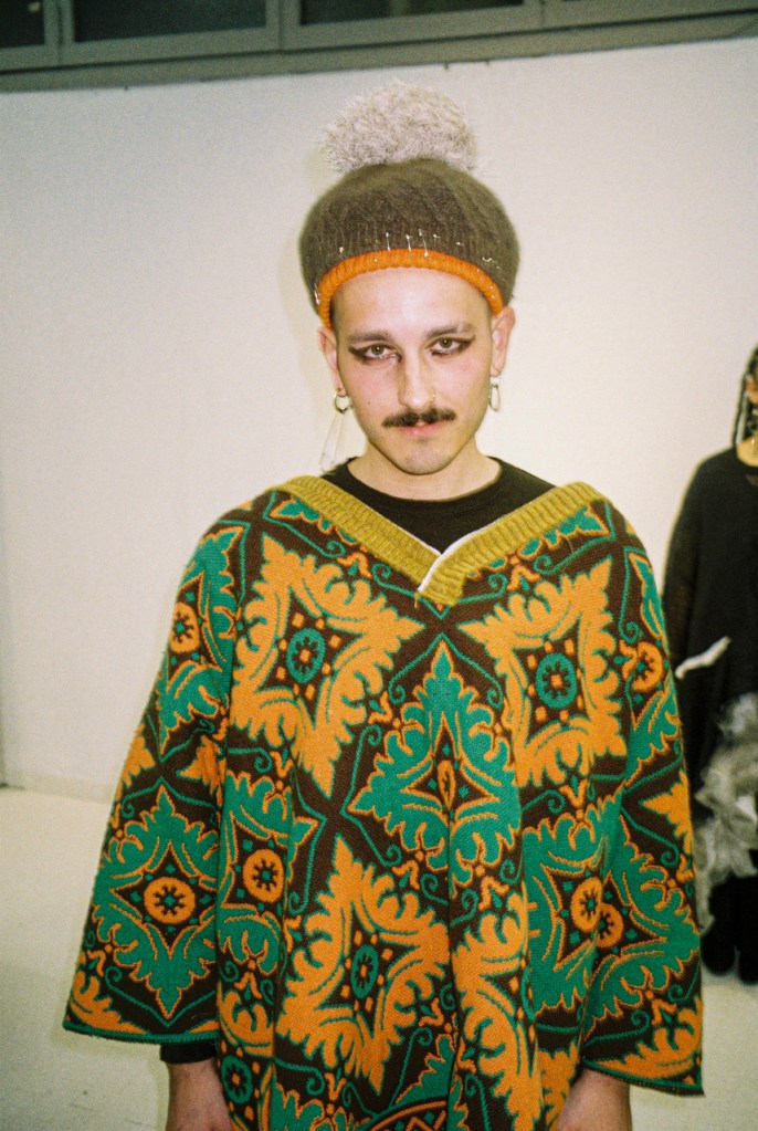 Even in this fashion show, our casting features friends of different ages, gender and physicality: they complete their own outfit with their own shoes and accessories, pointing out our desire for authenticity, up to the point where an accident has become part of our storytelling.