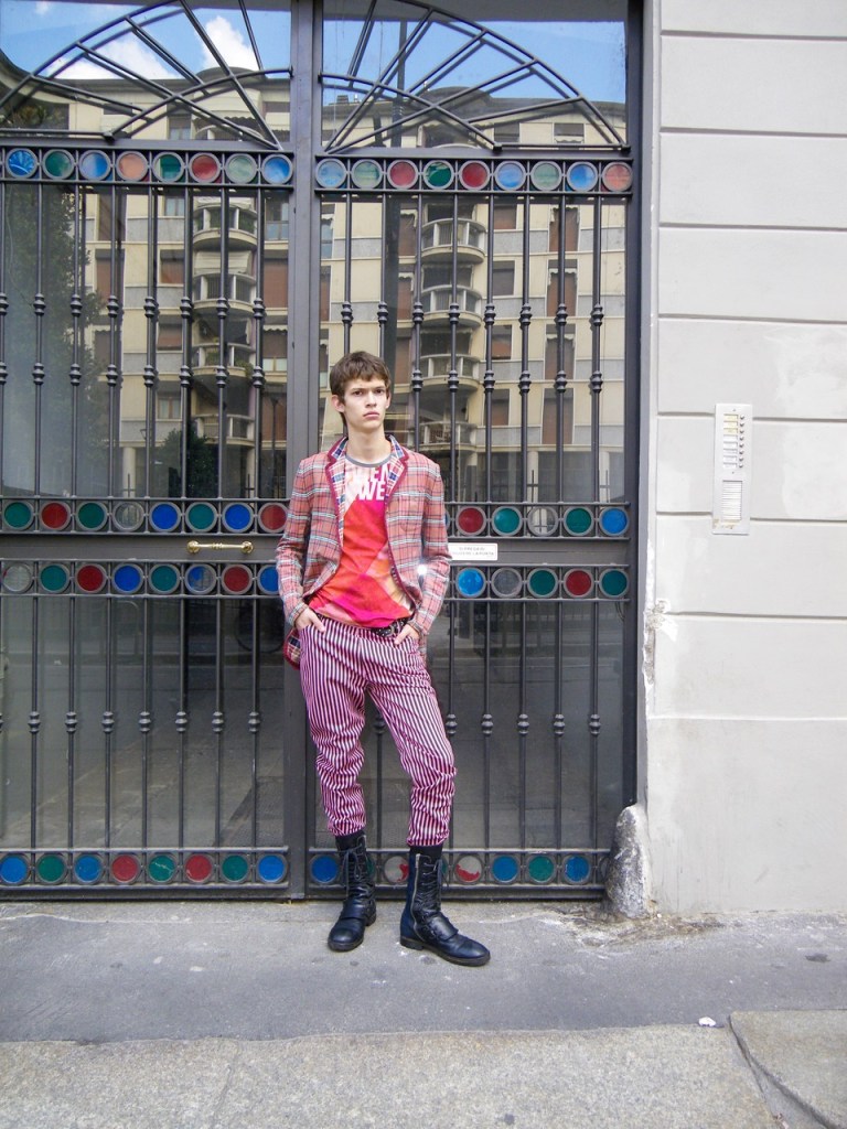 ‘ A little anecdote here about this stunning Westwood Spring Summer 2010 runway piece. I was gifted the top by the press office in Milano, I wore it to a party during Fashion Week at iconic club Plastic, back then they had candelabras with real candles on the bar, long story short, we were all rather drunk, I decided to sit on the bar, a friend who will remain unnamed ( everybody knows who it is) pushed me while voguing or dancing, and the back of the top caught fire ( strangely enough it wasn’t evne the first time I caught fire in a club, I guess I have a fiery personality). I was unharmed, the top wasn’t, it is now a very interesting ‘customized’ piece with a huge hole in the netting layer in the back, which makes it somehow both less and more valuable.’
