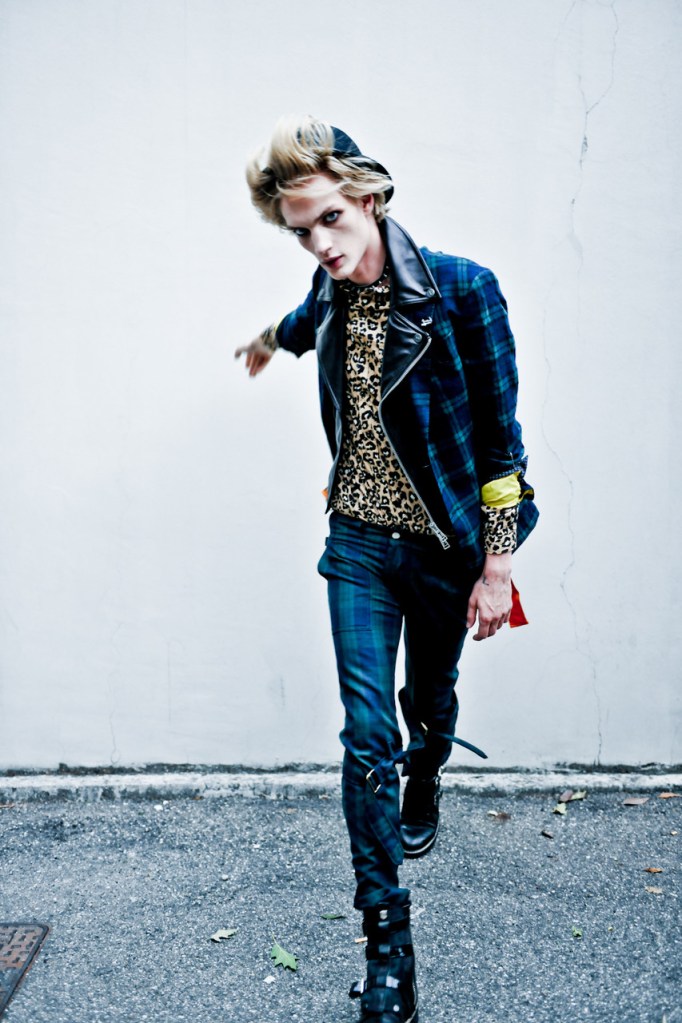 “Punk reproduced the entire sartorial history of post-war working-class youth cultures in ‘cut up’ form, combining elements which had originally belonged to completely different epochs. There was a chaos of quiffs and leather jackets, brothel creepers and winkle pickers, plimsolls and paka macs, moddy crops and skinhead strides, drainpipes and vivid socks, bum freezers and bovver boots – all kept ‘in place’ and ‘out of time’ by the spectacular adhesives: the safety pins and plastic clothes pegs, the bondage straps and bits of string which attracted so much horrified and fascinated attention”